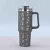 1Pc 1200ML 304Stainless Steel Print Cup with Straw Portable Car Cup Large Capacity Water Cup Car Water Bottle
