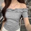 Design Hot Girl Fashionable Waistline Polka Dot Short-sleeved T-shirt Summer New One-word Chic Slim Top