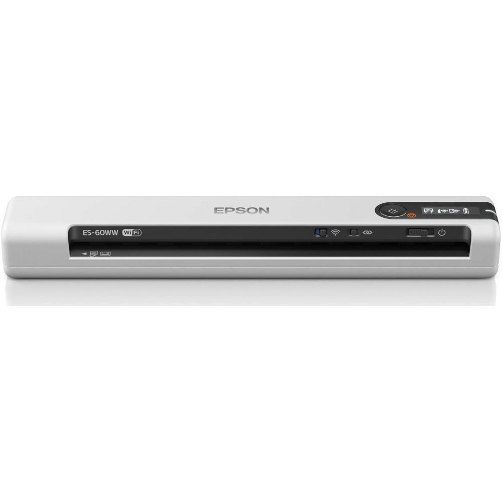 The EPSON scanner ES-60WW is a mobile scanner designed with portability in mind, making it easy to carry on the go. It can scan A4 color and monochrome documents in just 5.5 seconds, enhancing business efficiency. Its intuitive design ensures easy access to controls, and the built-in lithium-ion battery allows scanning of up to 300 A4 documents. It supports both USB power and wireless LAN connection, making it versatile in various settings.