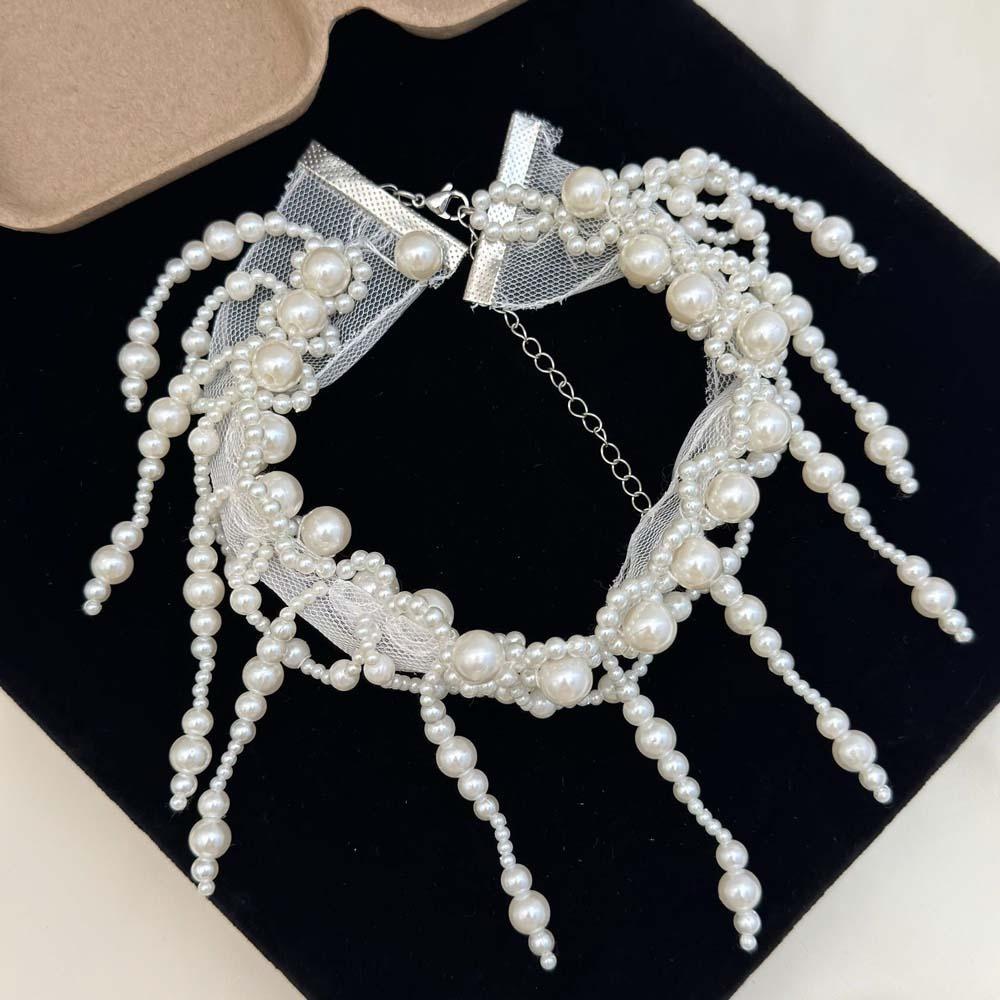 Creative Pearl Lace Choker White Mesh Neck Jewelry Personalized Tassel Beads Necklace Accessories