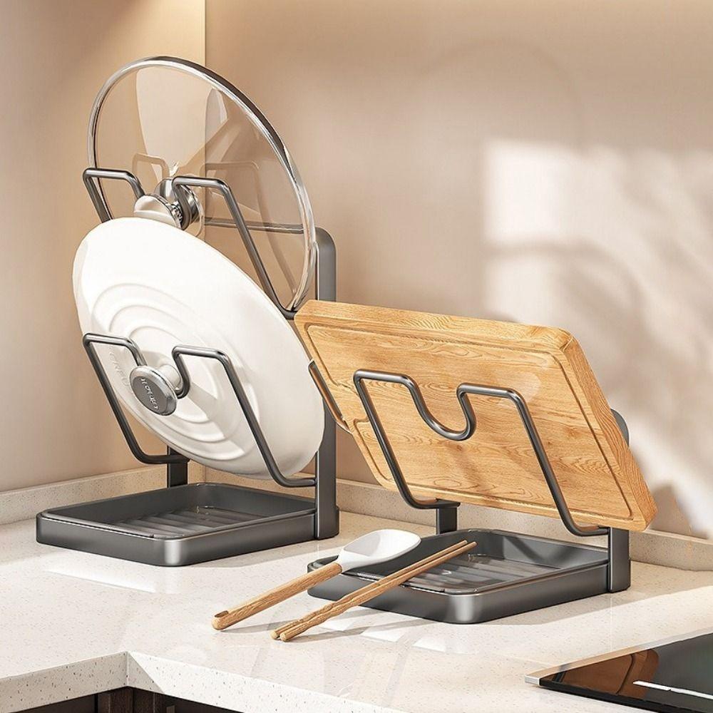 Anti-slip Cutting Board Storage Rack Space Saving Pot Cover Shelf Double Layers Pot Lid Rack Home