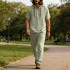 Men's Linen Casual Set - Button Shirt Elastic Waist Drawstring Loose-Fit Pants Comfortable Two-Piece Set