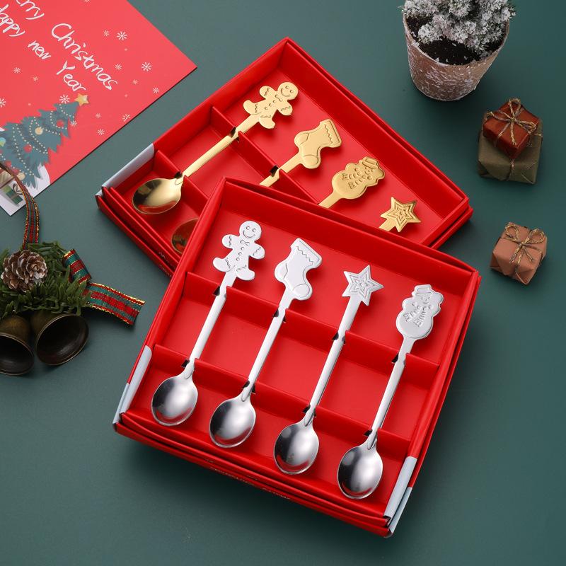 Christmas Spoon Gift Box Tableware Set Coffee Stirring Spoon Dessert Spoon Creative Cartoon Stainless Steel Christmas Spoon