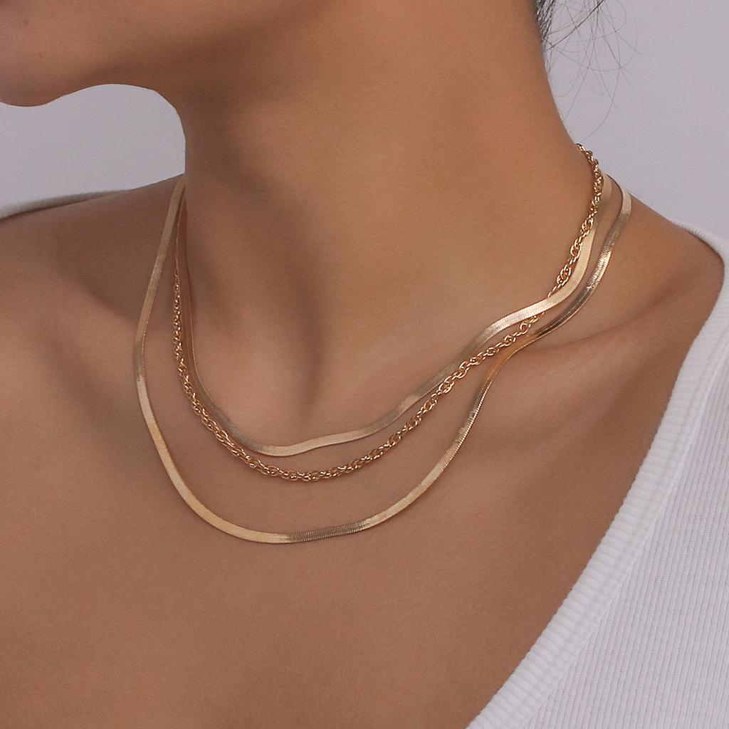Women European Simple Multi-Layer Snake Bone Choker Retro Punk Metal Style Jewelry Minimalist Geometric Temperament Necklace
