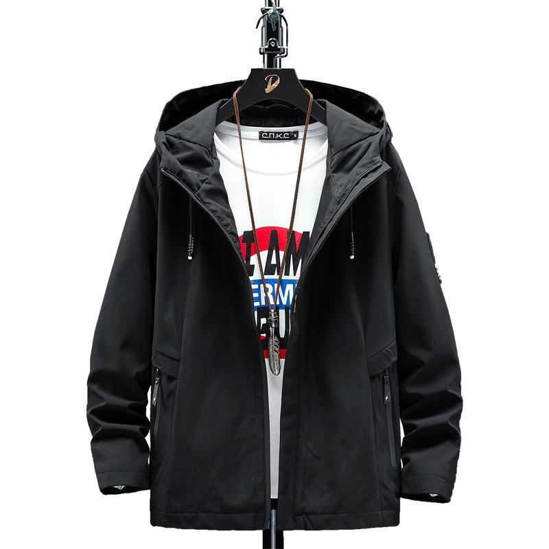 Spring Jacket Men's Hooded Jacket Youth Thin Jacket Outdoor Sports Casual Jacket Plus Size 5XL