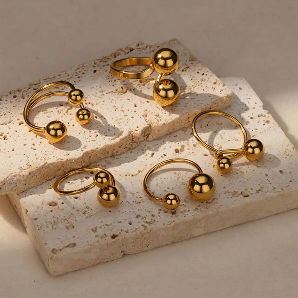 Exaggerated Stainless Steel Bead Ball Rings For Women Men Open Adjustable Gold Color Stainless Steel Ring Waterproof Jewelry