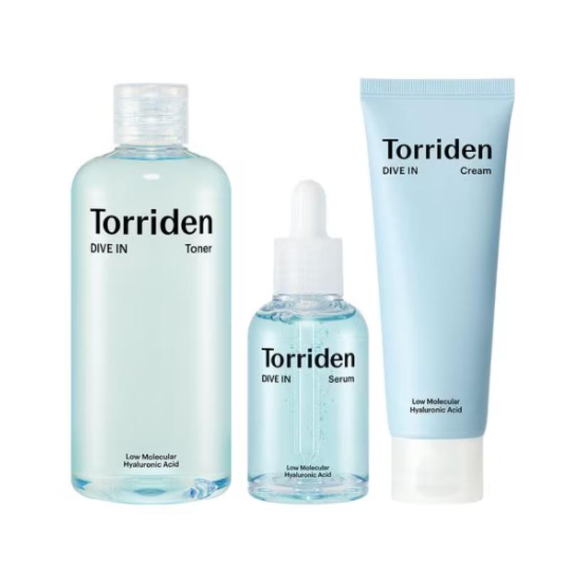 This complete hydration skincare set features Torriden’s bestselling DIVE-IN line with low molecular hyaluronic acid to deliver deep and long-lasting moisture. The toner replenishes hydration and prepares the skin, the serum provides concentrated moisture care, and the cream locks in hydration while strengthening the skin barrier. The lightweight yet powerful formulas absorb quickly, leaving skin plump, smooth, and refreshed. Perfect for daily skincare routines targeting dryness and dehydration.