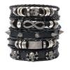 Punk Multilayer Antique Leather Bracelet Set Skull Eye Star Charms Hiphop Rock Y2K Vintage Pu Gothic Wristband Man Goth Jewelry