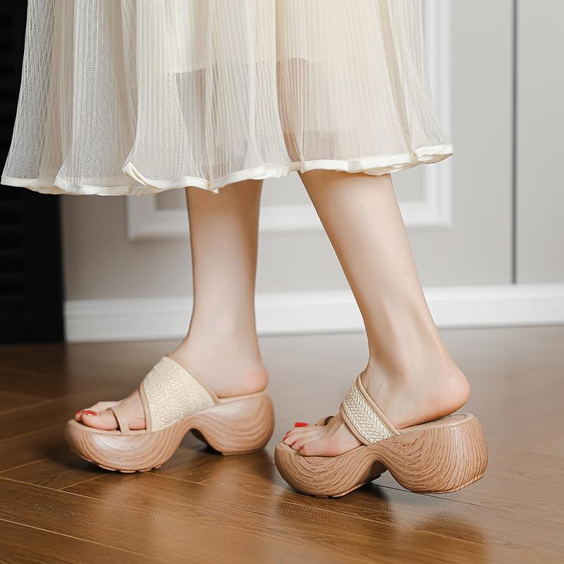French Retro Platform Cover Toe Slippers Women's Outer Wear Summer New Straw Heel Casual Muffin Sole Sandals Women