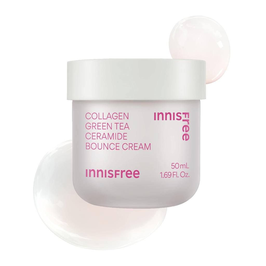Innisfree Collagen Green Tea Ceramide Bounce Cream 50mL Firms and Hydrates with Hyaluronic Rich In Suitable for and Combination Korean Cosmetics for