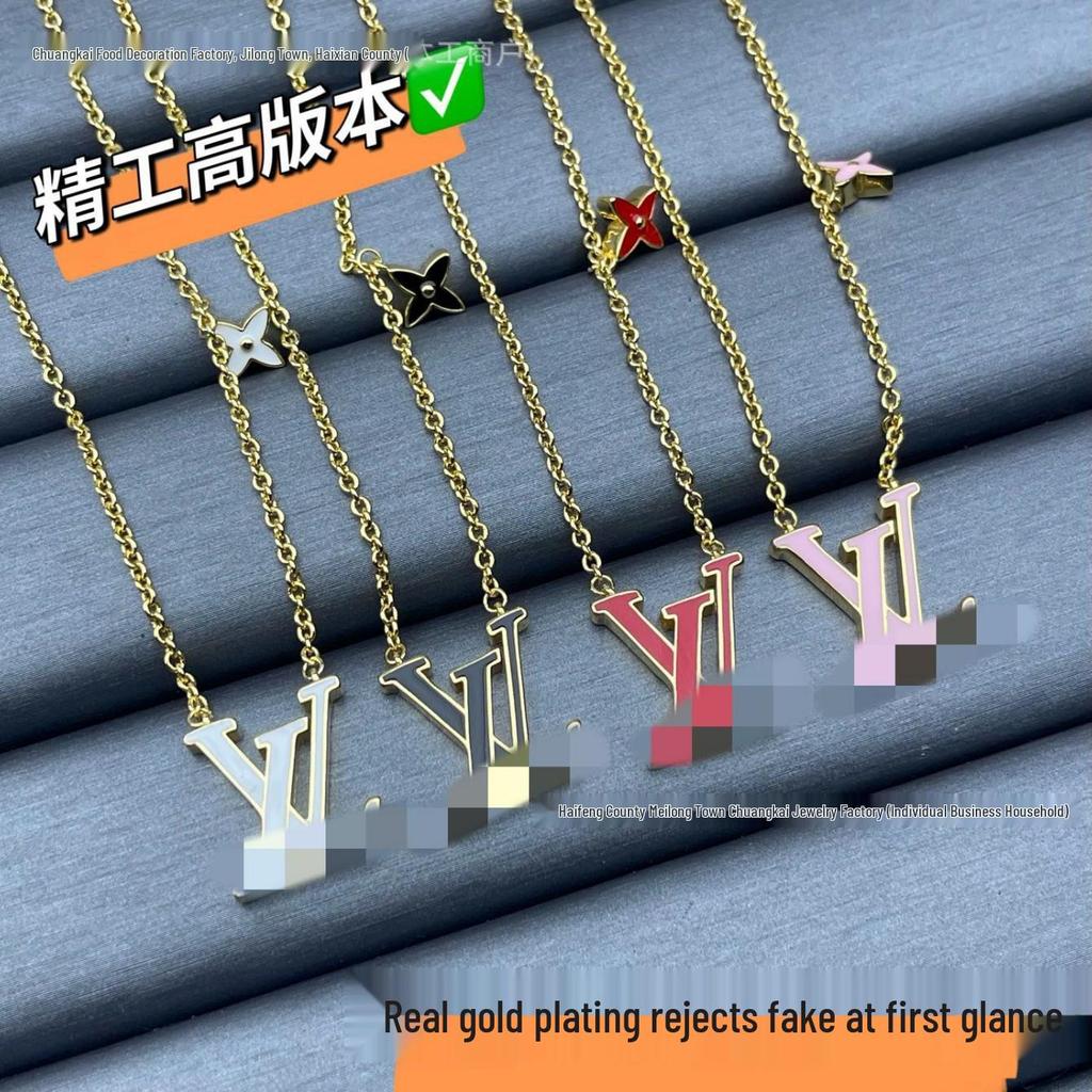 European Donkey V Necklace Set: High Version Enamel Flower Letter Clavicle Chain - Versatile & Fashionable