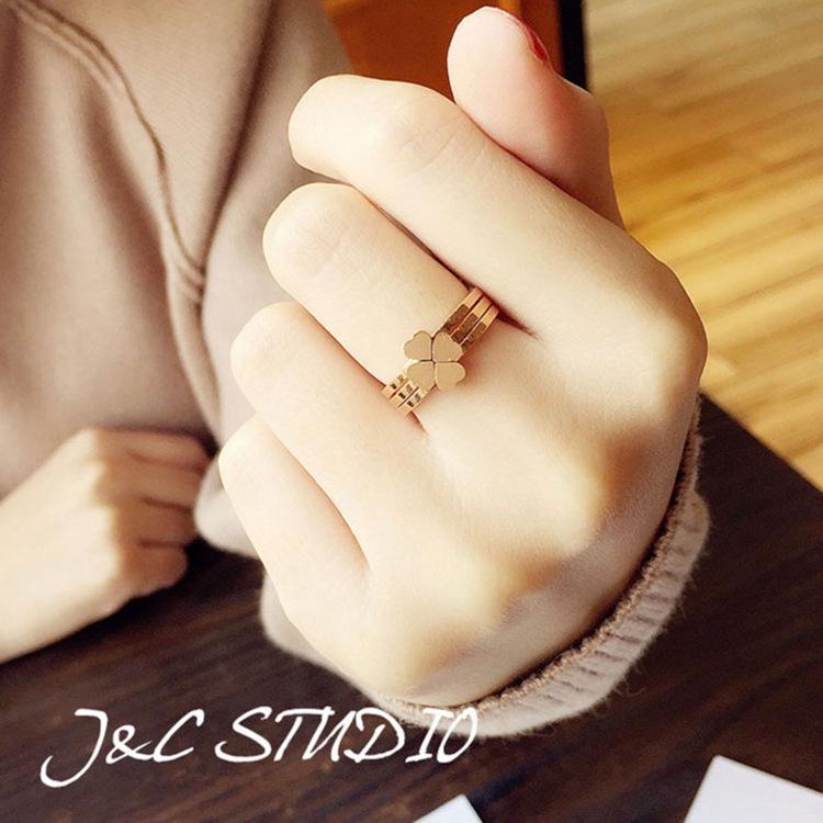 Rose Gold Plated Titanium Steel Heart Ring Set for Women - Three-Piece Index Finger Set