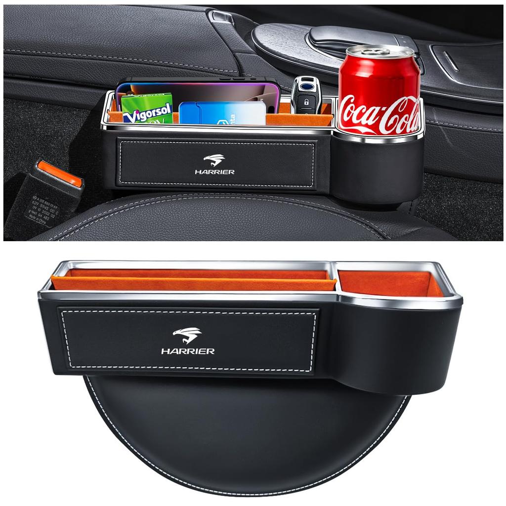 Car Side Storage Box Compatible with Harrier 2025 New Model Large Capacity [Drink Holder + Small Item Storage] HARRIER 30 Series 60 Series 80 Series Harrier Seat Gap Pocket Armrest Storage Box Gap Filler PU Leather Black + Metal Frame Wear Resistant Removable Divider Anti-Drop Easy Installation