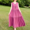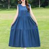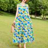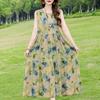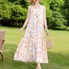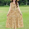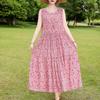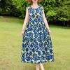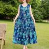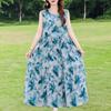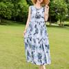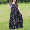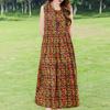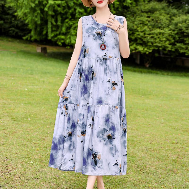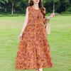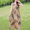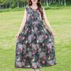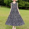 Elegant Sleeveless Dress for Women Plus Size Loose Vintage Print Long Dress Summer Middle-aged Women's Clothing