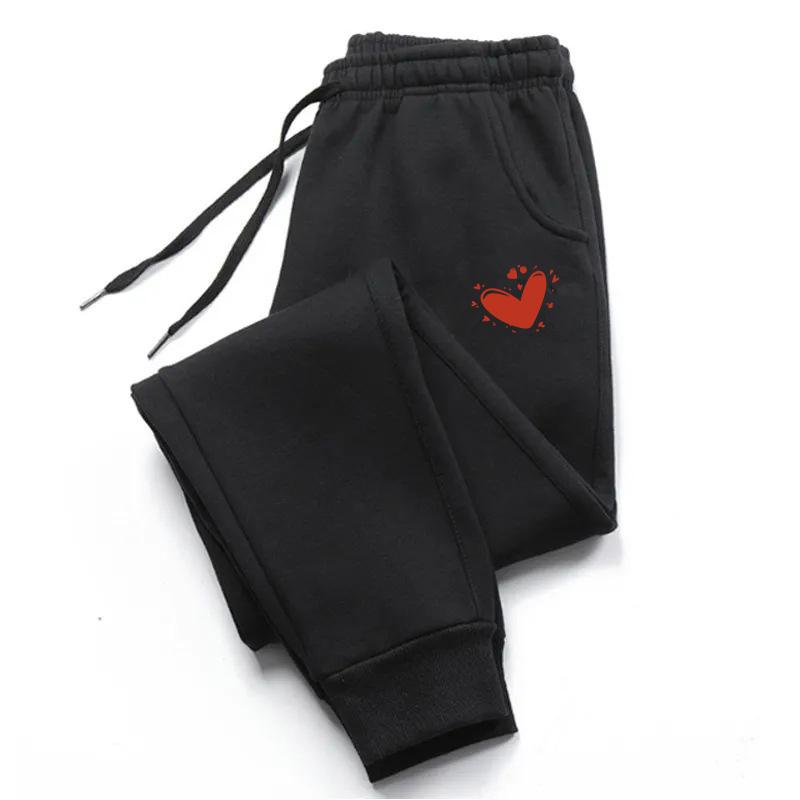 Women's Cute Heart-Shaped Printed Sports Pants With Autumn And Winter Velvet Long Pants Jogging Pants Casual Sports
