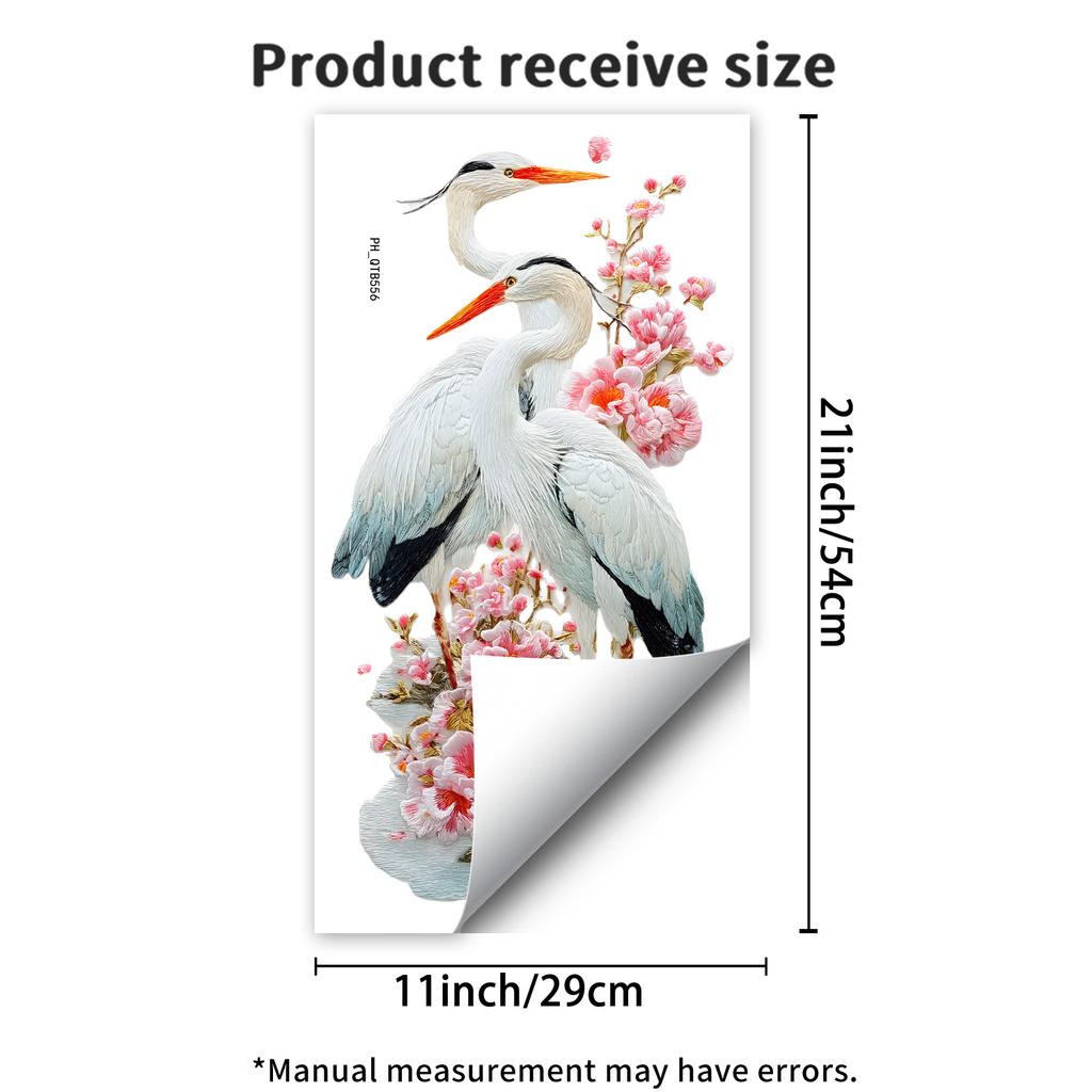 Chinese Style Floral Bird Egret Peach Blossom Wall Sticker Self-Adhesive Removable Living Room Bedroom Hallway Background Wall Home Decor Art