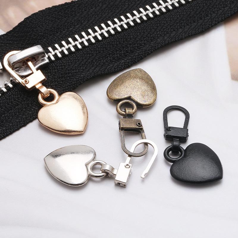5PCS Sewing Zippers Puller Head Heart Shape Detachable Metal Zipper Slider Repair Kits for Bags Backpack Coat Zipper Pull Tab