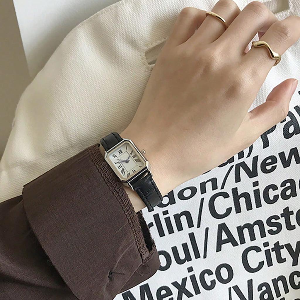 Retro Watches Classic Casual Quartz Dial Leather Strap Band Rectangle Clock Fashionable Wrist Watches for Women