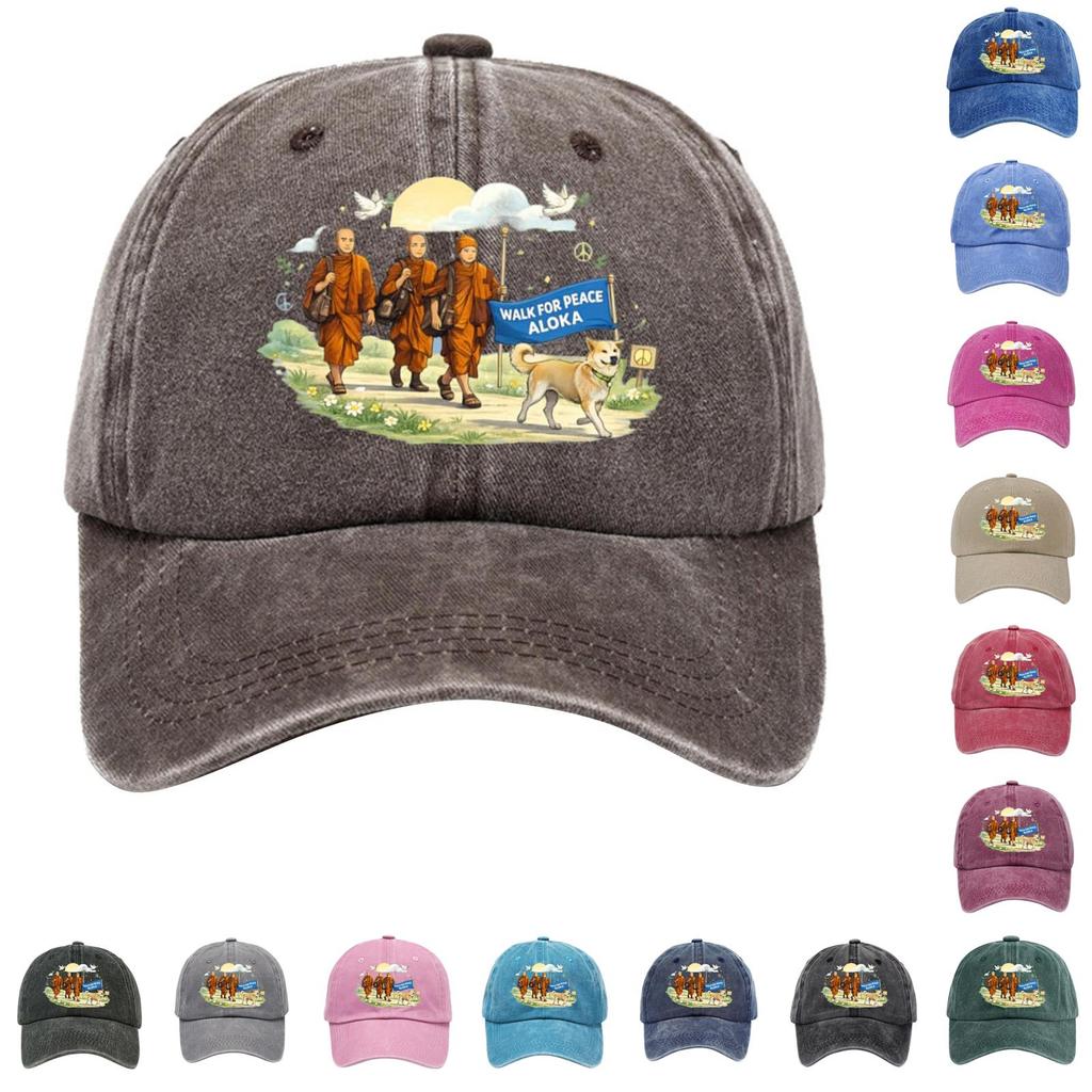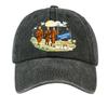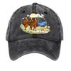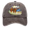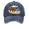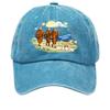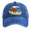 Washed Cotton Baseball Cap with Printed Distressed Soft Top Denim Hat, Vintage Hat