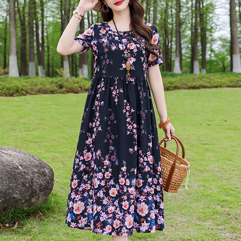Casual Women's Dress Summer Vintage Clothes Loose Short Sleeve Plus Size Elegant Long Dresses