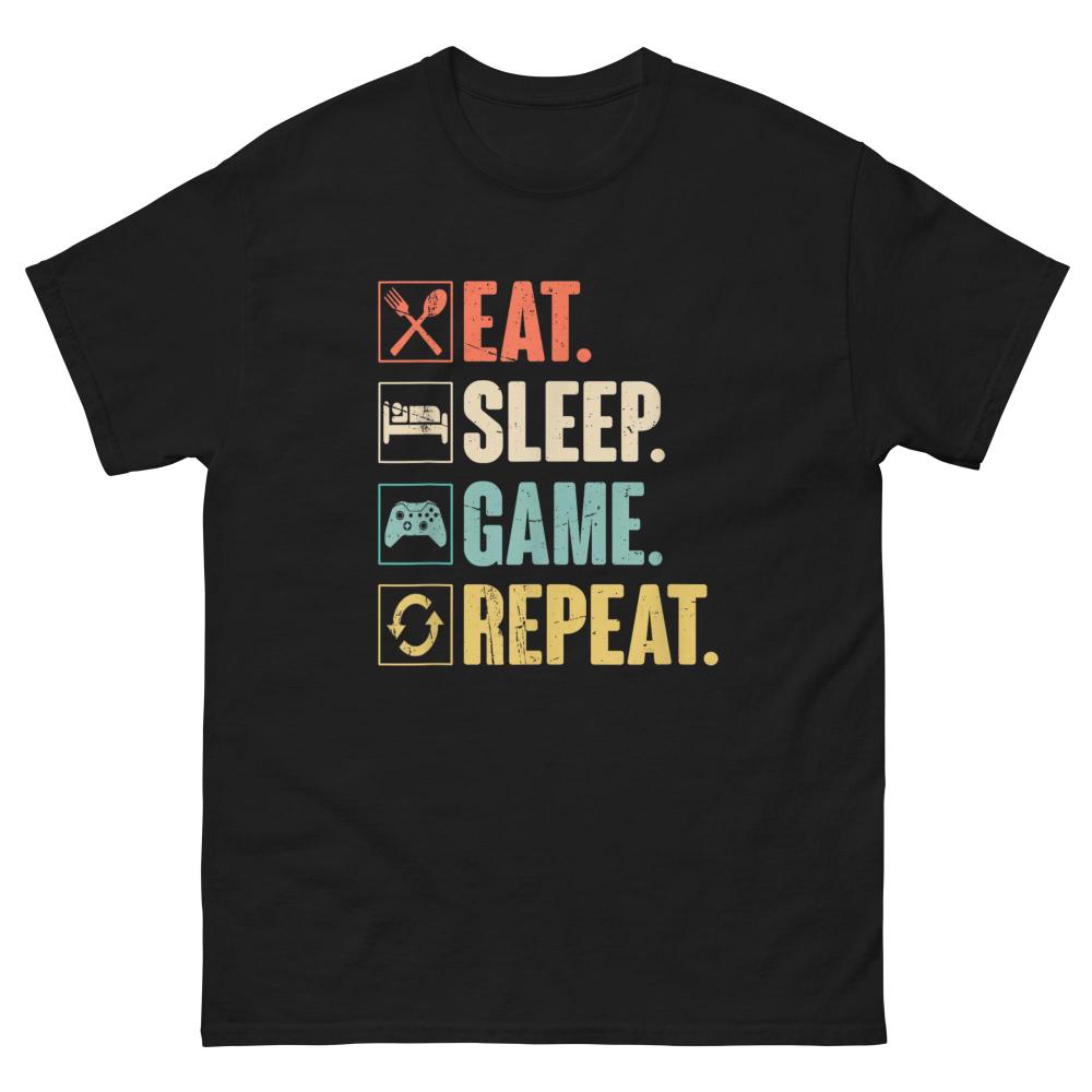 Gamer TShirt EAT SLEEP GAME Repeat Tee Video Game Fan Gift Clothing Graphic Short Sleeve Shirt Unisex Unisex Women AllSeason