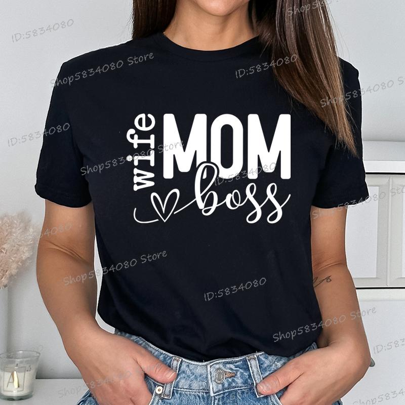 Mom Wife Boss Graphic T Shirts Women Blessed Mama Short Sleeve Tee Mom Life Classic Tops Tees Happy Mothers Day Funny T Shirts