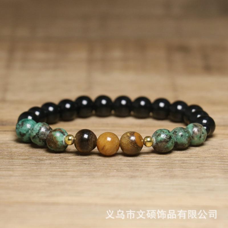 Turquoise Tiger's Eye Beaded Bracelet – Black Onyx Gold Accent Protection Jewelry, Men's Grounding Gift