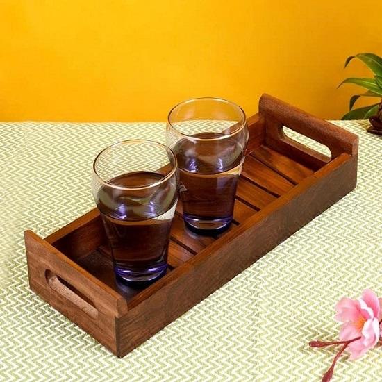 Elevate your moments of hospitality and style with our exquisitely Handcrafted Sheesham Wood Serving Tray. Meticulously carved by skilled artisans, this isn't just a tray; it's a functional piece of art for your home. Each piece celebrates the natural beauty of solid wood, featuring unique grain patterns and a warm, rich hue that adds a touch of organic elegance to any setting.