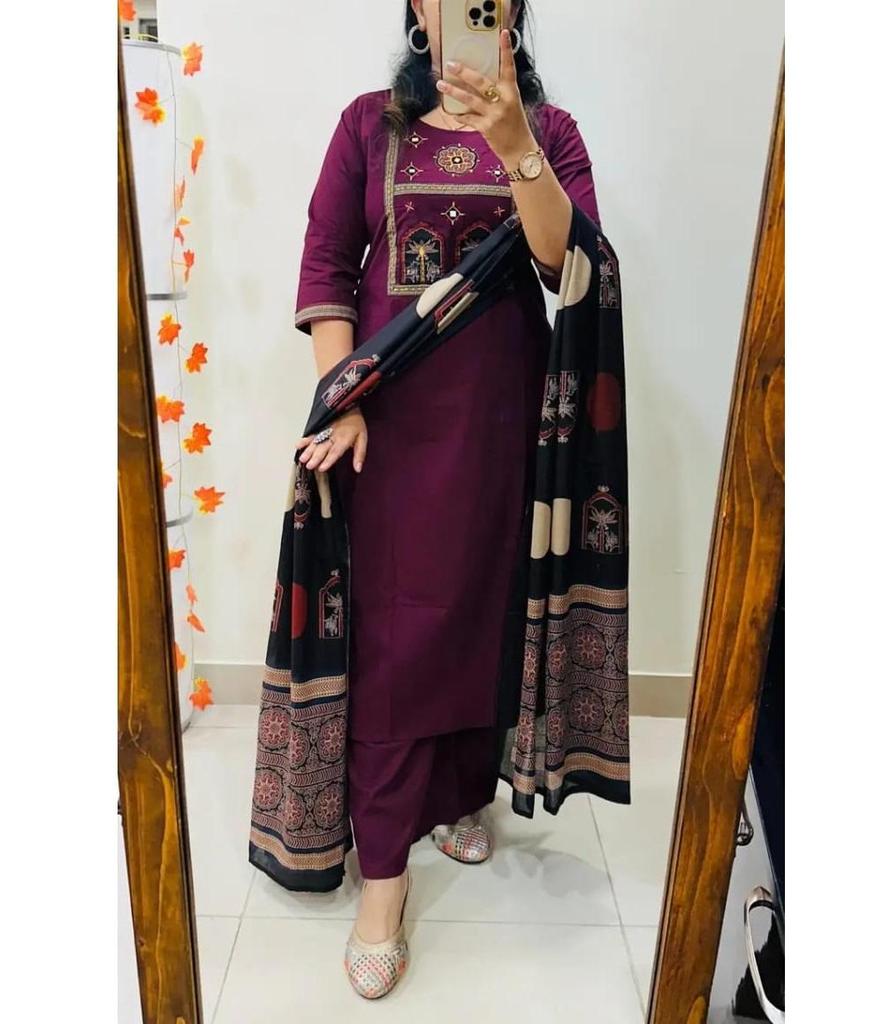 Indian Designer Cotton Kurta Pant Dupatta Set Women Bollywood Party Wear Top Tunic Kurti