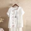 Women Bohemian Summer Floral Embroidered Shirt Short Sleeves Top Blouse