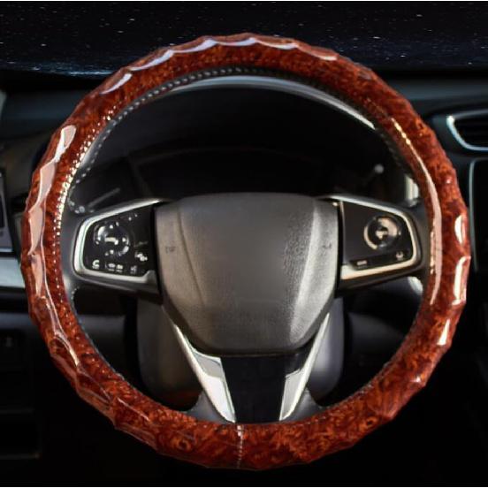15 Inch Leather Steering Wheel Cover Peach Wood Grain Anti-Slip Breathable Comfortable Four Seasons Universal Car Wheel Protector (Coffee)