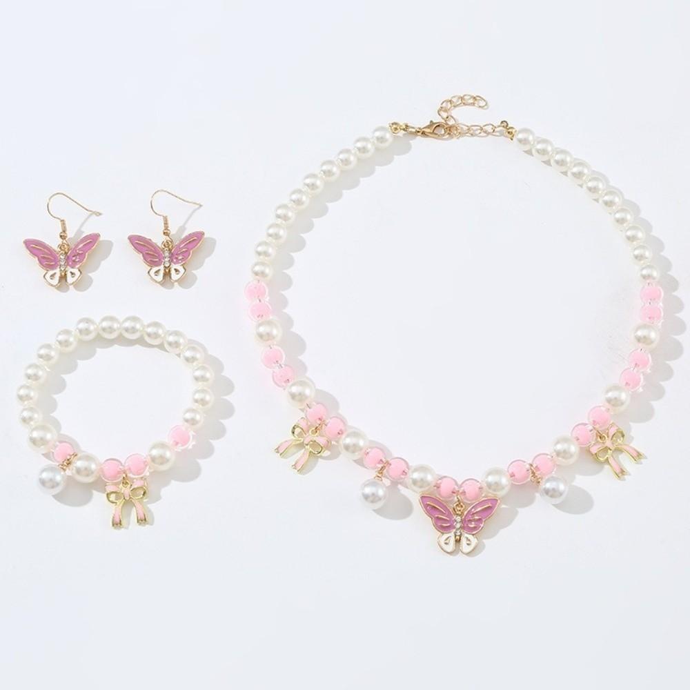 Pink Pearl Beaded Necklace Hand Chain Sweet Style Ear Pendants Children's