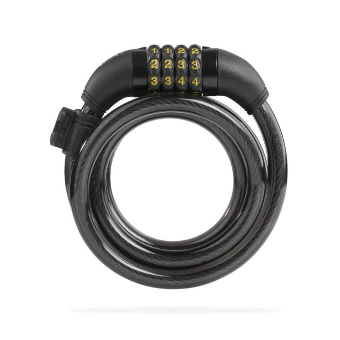 Antivol en spirale à combinaison - 120 cm - Noir - Câble acier gainé - Serrure 4 chiffres