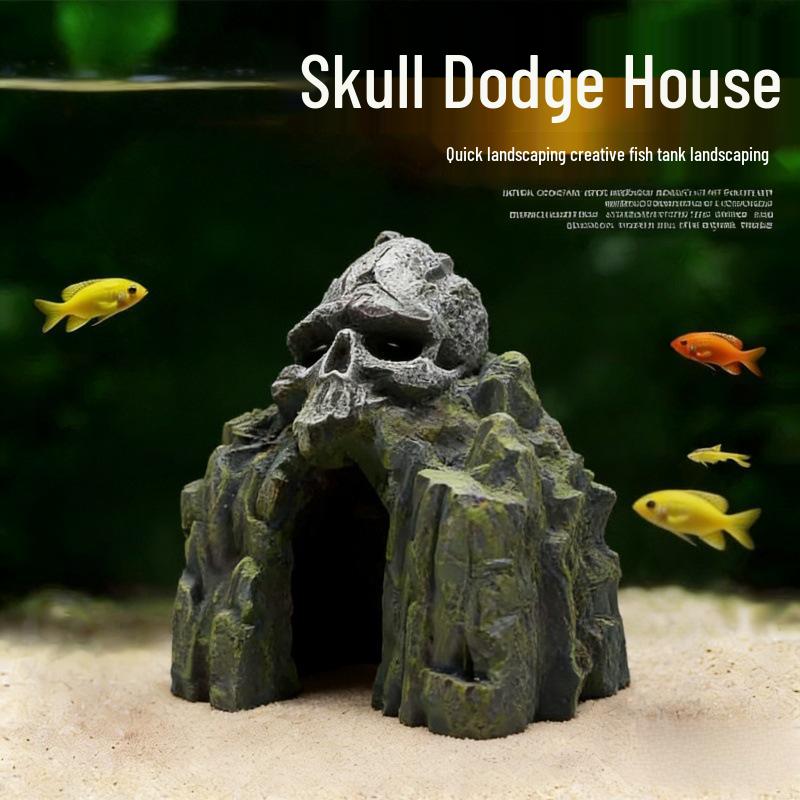 Skull Rockery Fish Tank Ornament: Creative Stone Cave for Fish and Shrimp Hideaway
