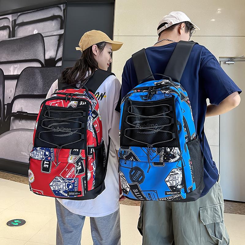 Street Style Printed Front Pocket Student Schoolbag Korean Version Casual Style Large Capacity Backpack