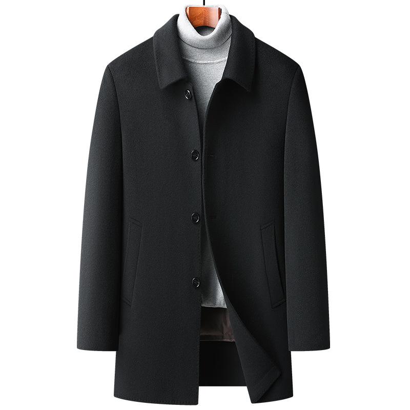 Wool-stitched Double-sided Nylon Wool Coat for Men, Autumn and Winter Down-lined Anti-cold Woolen Coat