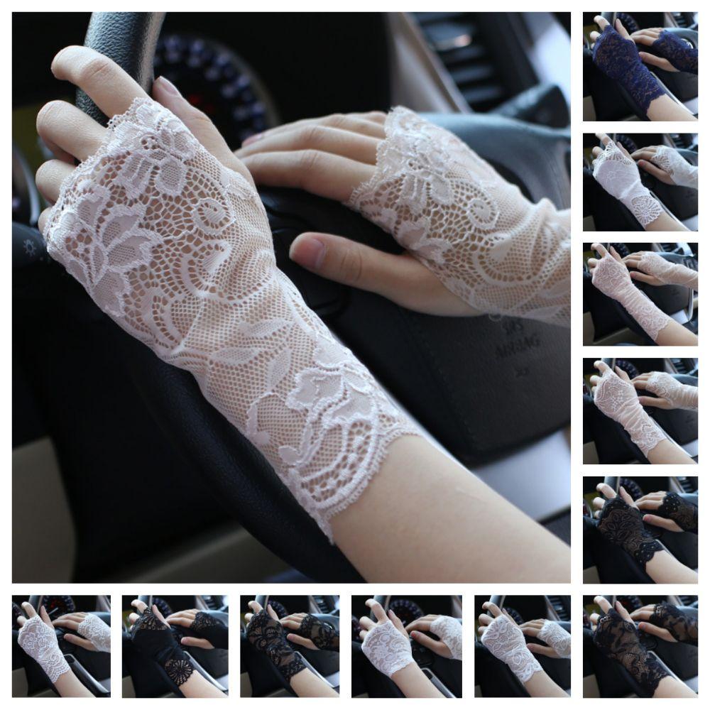 Thin Lace Half Finger Gloves Breathable Sun Protection Riding Gloves Driving Gloves Wedding Events