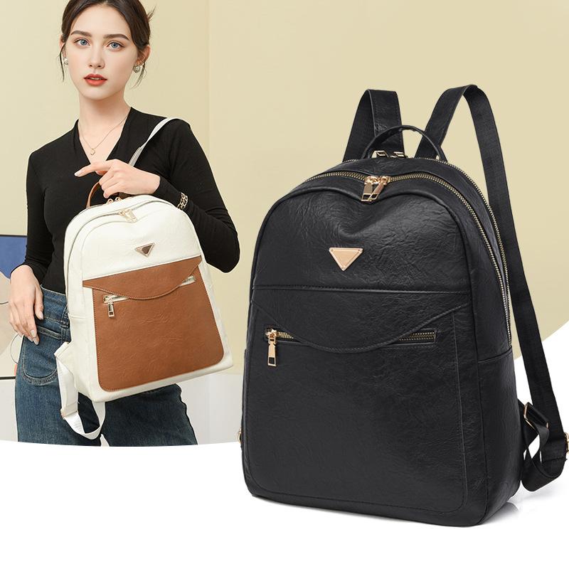 Korean Version of Foreign Style Simple Backpack Women's Color Temperament Versatile Commuter Travel Small Backpack College Student Class Schoolbag