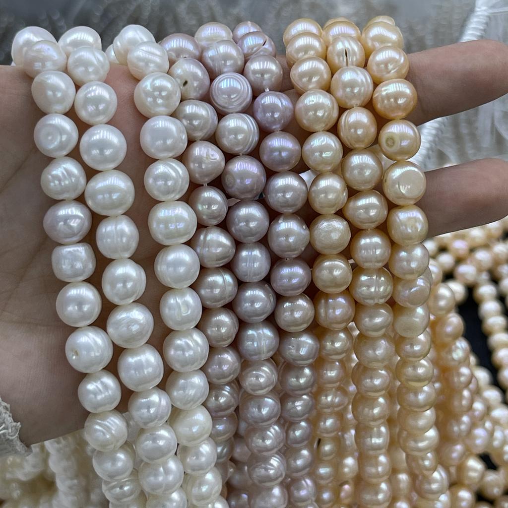 1String, White Pink Purple Natural Freshwater Pearls, Handmade Near Round Beads for Jewelry Making DIY Crafts (Beads 9-10mm, Length 36cm)