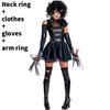 This M-XL Edward Scissorhands cosplay costume features a polyester-blend fabric, designed for male performers. The costume is suitable for Halloween, costume parties, and dance performances, capturing the fantasy and tribal themes. It includes black clothing accessories and complements black wigs and stockings for complete character portrayal. Hand wash gently to maintain fabric integrity.