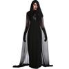 Women's black ghost zombie dress,the black robe is long length to show good figure and loose veil cloak to create seductive and dark horro
