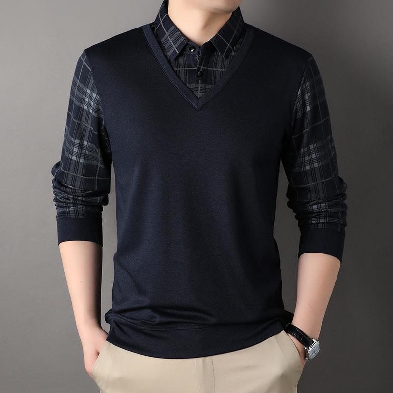 Dad's Spring and Autumn Long-sleeved T-shirts, Middle-aged and Elderly Men's Casual Pullover Bottoming Shirts, Autumn Holiday Two-piece Tops