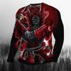 Super Cool Vintage Japanese Samurai Men's T-shirt O-Neck Cotton Men's Clothing Oversized Casual Long Sleeve Tops 3D Printed