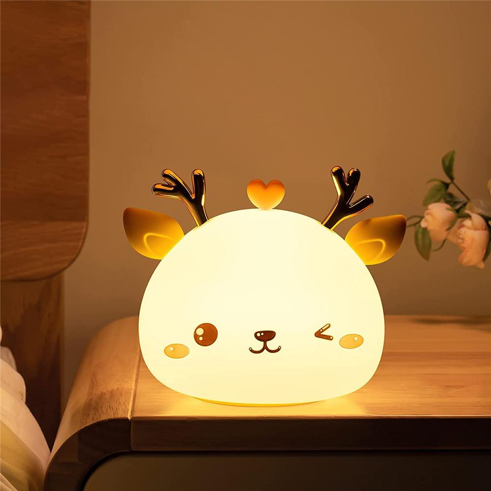 Silicone Usb Touch-sensor Led Night Light Cute Deer-shaped 7 Colors Brightness Adjustable Room Desktop Decor Lamp For Kids Girls