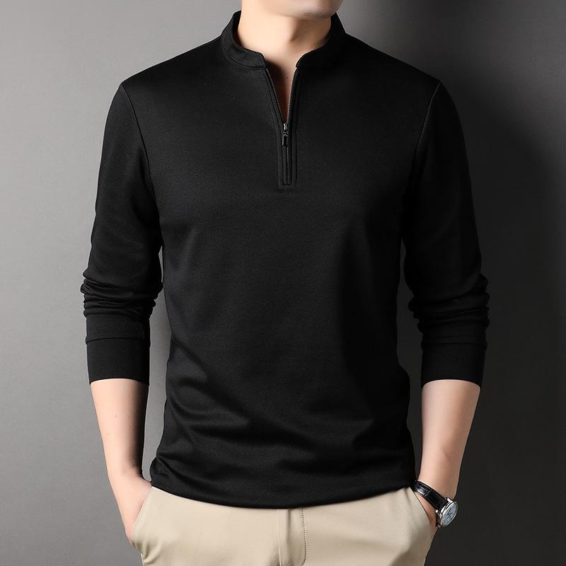 Autumn Zipper Stand Collar Men's T-shirt for Young and Middle-aged People Casual Solid Color Thin Cotton Long-sleeved Bottoming Shirt Men's Sweatshirt