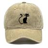 Casual Snapback Cap Cute Black Cat Hat Unisex Women Adjustable Buckle Distressed Outdoor Sun Protection Picnic Fishing Cycling Hat