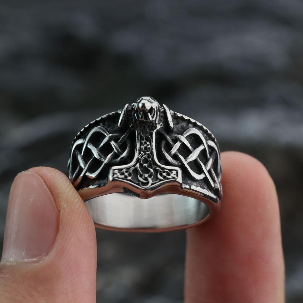 Retro Viking Thor Hammer Stainless Steel Men's Ring