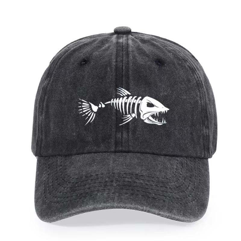 Fishbone Baseball Cap Summer Distressed Dad Hats Unisex Outdoor Fishing Skeleton Fish Bone Caps MZ-496 Fishbone Baseball Cap Summer