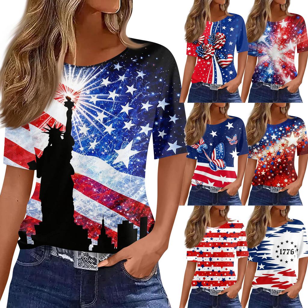 Women's Fashionable Casual Short Sleeve Print Round Neck Pullover Top