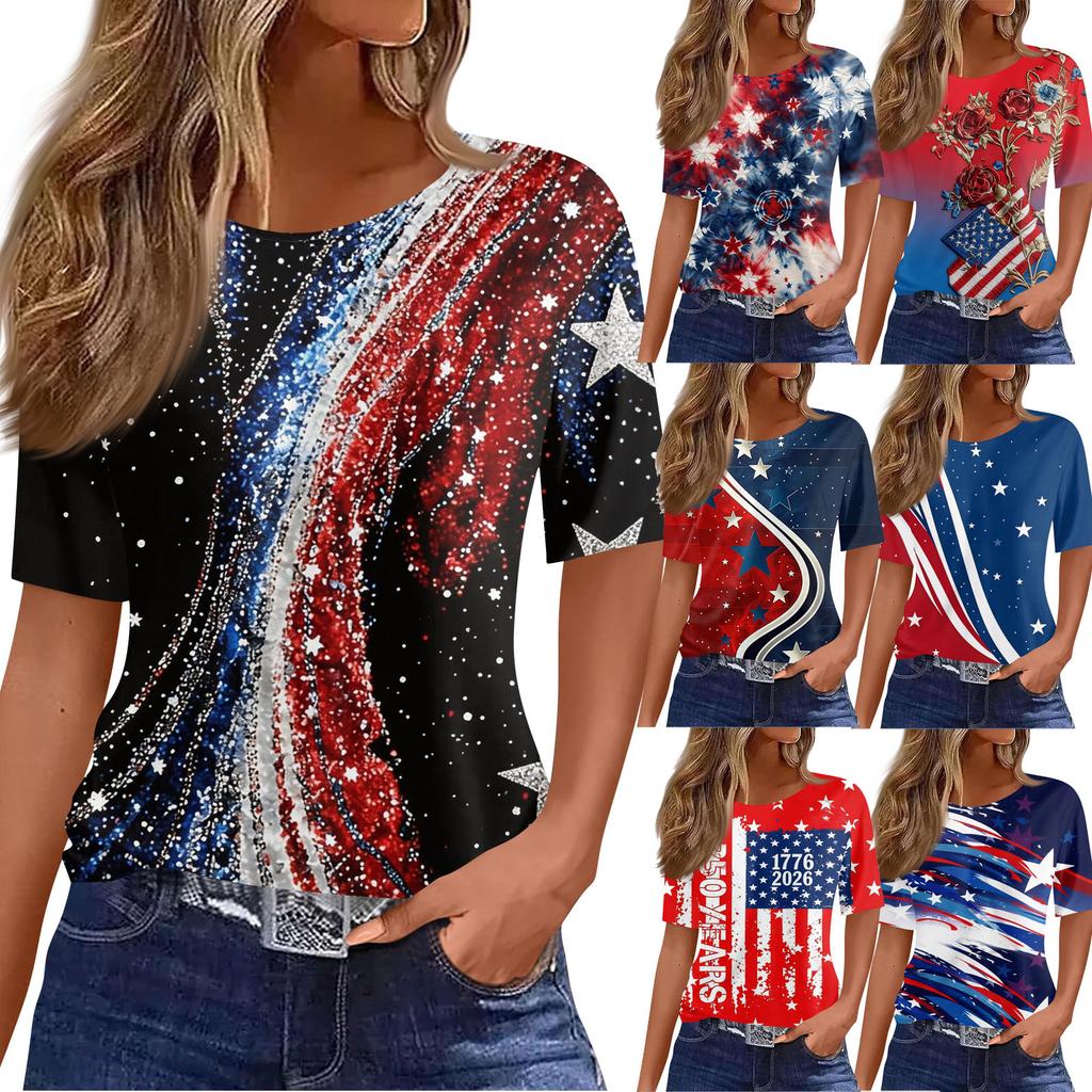 Women's Fashionable Casual Short Sleeve Print Round Neck Pullover Top
